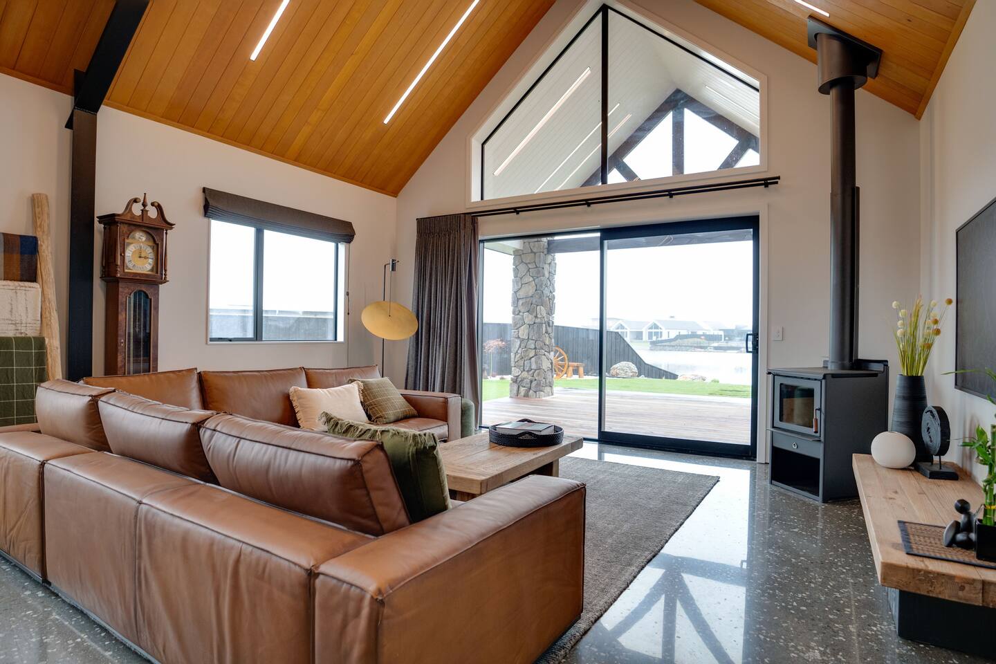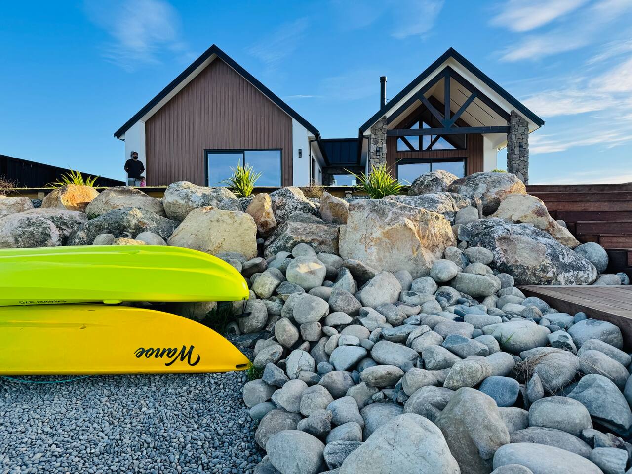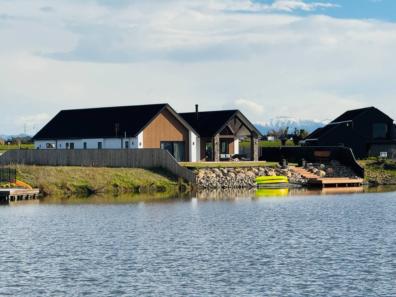 This newly built, architecturally designed 4-bedroom home nestled on the serene estuary leading to Lake Hood. Accommodating up to 8 guests, this modern farmhouse-style retreat offers a private jetty, allowing direct access to the lake via kayak or jet ski in just 8 minutes. Experience the perfect blend of luxury, comfort, and natural beauty in a tranquil setting. 🛏️ Bedrooms Master Suite: Features a queen-sized bed, panoramic estuary views and a luxurious ensuite bathroom with designer fixtures. Bedroom 2: Queen-sized bed with ample storage and cozy ambiance. Bedroom 3: Two single beds, ideal for children or friends. Bedroom 4: Queen-sized bed, thoughtfully decorated for comfort. All bedrooms are equipped with underfloor heating and high-quality linens to ensure a restful night’s sleep. 🛁 Bathrooms Ensuite: Adorned with copper tapware and an intelligent toilet featuring a heated seat. Family Bathroom: Includes a bathtub, separate shower, and modern fixtures. Powder Room: Conveniently located near the living area for guest use features a unique honeycomb mirror. 🍽️ Kitchen & Living The open-plan kitchen, dining, and living area boasts soaring 5.5-meter ceilings with exposed steel beams, creating an airy, chapel-like ambiance. The kitchen is a chef’s delight, featuring concrete-grey cabinetry, a porcelain island, black subway tiles, and top-of-the-line appliances. The living area centres around a wood-burning fireplace (currently not for guest use), perfect for cozy evenings, and is complemented by heated polished concrete floors throughout. 🌅 Outdoor Amenities Private Jetty: Launch kayaks or jet skis directly from your backyard for an 8-minute journey to Lake Hood. Cantilevered Deck: Overlooks the estuary, furnished with comfortable seating for relaxation or alfresco dining. Landscaped Grounds: Surrounded by native flora, providing privacy and a connection to nature. There is no fence between the estuary and the property so if you are bringing children, please pay close attention to their whereabouts at all times, otherwise this place may not be ideal for your family. 🚤 Local Attractions & Activities Lake Hood is a haven for water enthusiasts and nature lovers alike. Activities include: Water Sports: Swimming, kayaking, sailing, water-skiing, and jet skiing on the 80-hectare lake. Rowing: An eight-lane international rowing course attracts events and competitions. Trails: Walking, mountain biking, and horse trekking trails surround the lake. Fishing: Abundant opportunities for both novice and experienced anglers.   For a change of scenery, explore nearby attractions: Rakaia Gorge: Known for its stunning turquoise waters, offering jet boating, fishing, and scenic walks. Ashburton: Just a 10-minute drive away, featuring cafes, shops, and cultural sites.  🍽️ Dining Indulge in a culinary experience at The Lake House Restaurant & Bar, located within walking distance. Nestled in Marina Bay, it offers uninterrupted views of Lake Hood and the Southern Alps. Enjoy a diverse menu featuring New Zealand and European cuisine, with options for indoor and outdoor seating.   🚗 Accessibility Situated just over an hour’s drive from Christchurch, The Great Escape offers a convenient yet secluded getaway. Whether you’re seeking adventure or relaxation, this estuary retreat provides the perfect base for your Lake Hood experience. Feel free to reach out if you need assistance with booking activities or have any questions during your stay!