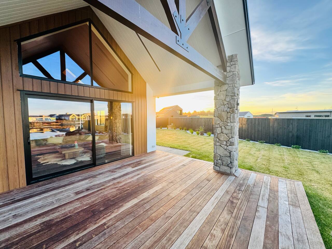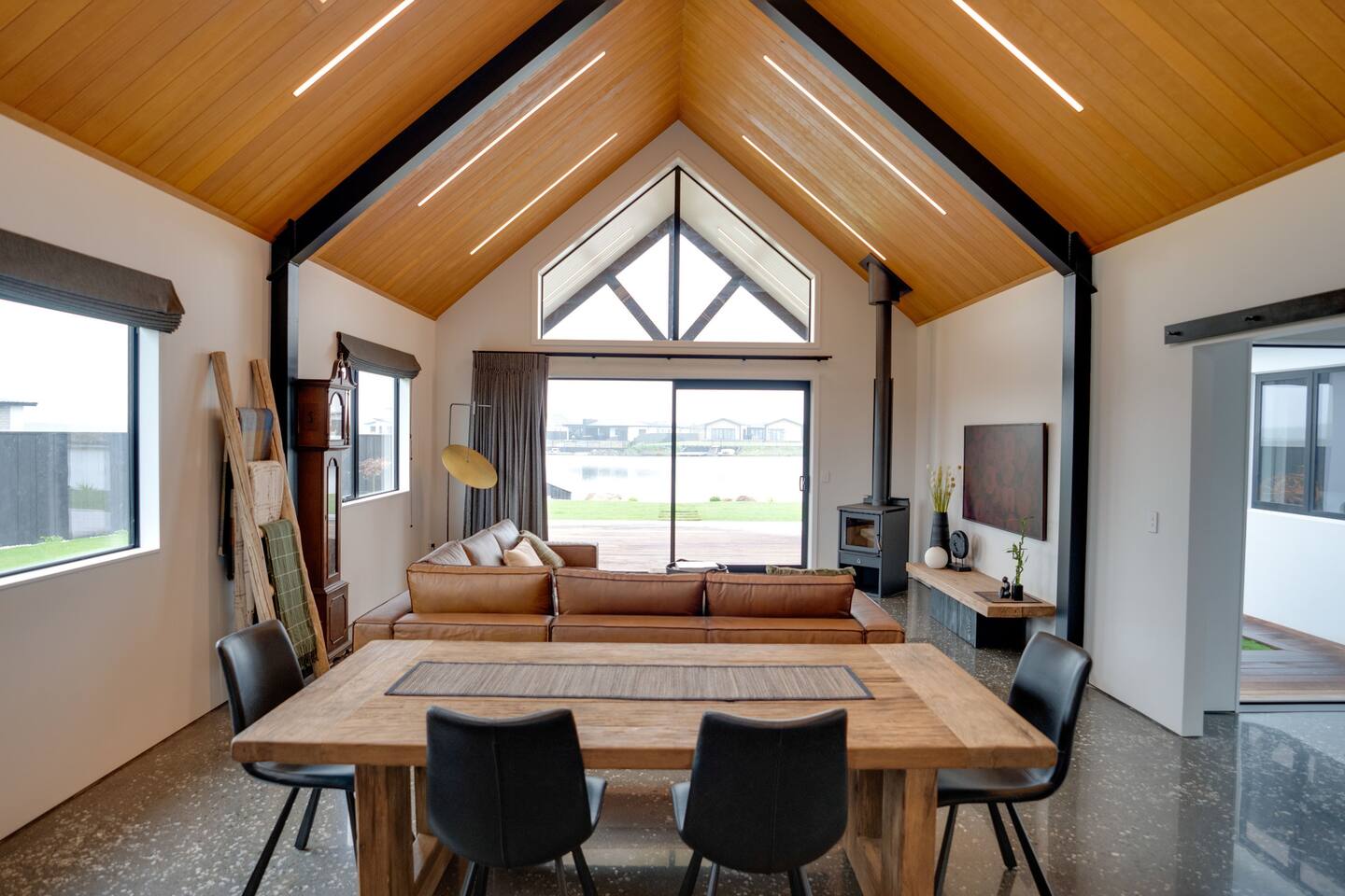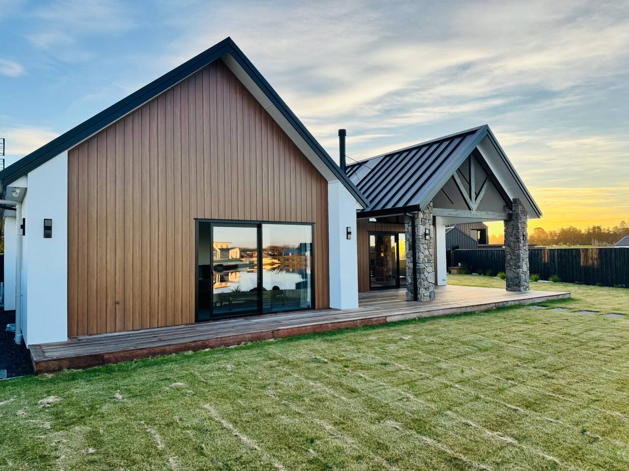 This newly built, architecturally designed 4-bedroom home nestled on the serene estuary leading to Lake Hood. Accommodating up to 8 guests, this modern farmhouse-style retreat offers a private jetty, allowing direct access to the lake via kayak or jet ski in just 8 minutes. Experience the perfect blend of luxury, comfort, and natural beauty in a tranquil setting. 🛏️ Bedrooms Master Suite: Features a queen-sized bed, panoramic estuary views and a luxurious ensuite bathroom with designer fixtures. Bedroom 2: Queen-sized bed with ample storage and cozy ambiance. Bedroom 3: Two single beds, ideal for children or friends. Bedroom 4: Queen-sized bed, thoughtfully decorated for comfort. All bedrooms are equipped with underfloor heating and high-quality linens to ensure a restful night’s sleep. 🛁 Bathrooms Ensuite: Adorned with copper tapware and an intelligent toilet featuring a heated seat. Family Bathroom: Includes a bathtub, separate shower, and modern fixtures. Powder Room: Conveniently located near the living area for guest use features a unique honeycomb mirror. 🍽️ Kitchen & Living The open-plan kitchen, dining, and living area boasts soaring 5.5-meter ceilings with exposed steel beams, creating an airy, chapel-like ambiance. The kitchen is a chef’s delight, featuring concrete-grey cabinetry, a porcelain island, black subway tiles, and top-of-the-line appliances. The living area centres around a wood-burning fireplace (currently not for guest use), perfect for cozy evenings, and is complemented by heated polished concrete floors throughout. 🌅 Outdoor Amenities Private Jetty: Launch kayaks or jet skis directly from your backyard for an 8-minute journey to Lake Hood. Cantilevered Deck: Overlooks the estuary, furnished with comfortable seating for relaxation or alfresco dining. Landscaped Grounds: Surrounded by native flora, providing privacy and a connection to nature. There is no fence between the estuary and the property so if you are bringing children, please pay close attention to their whereabouts at all times, otherwise this place may not be ideal for your family. 🚤 Local Attractions & Activities Lake Hood is a haven for water enthusiasts and nature lovers alike. Activities include: Water Sports: Swimming, kayaking, sailing, water-skiing, and jet skiing on the 80-hectare lake. Rowing: An eight-lane international rowing course attracts events and competitions. Trails: Walking, mountain biking, and horse trekking trails surround the lake. Fishing: Abundant opportunities for both novice and experienced anglers.   For a change of scenery, explore nearby attractions: Rakaia Gorge: Known for its stunning turquoise waters, offering jet boating, fishing, and scenic walks. Ashburton: Just a 10-minute drive away, featuring cafes, shops, and cultural sites.  🍽️ Dining Indulge in a culinary experience at The Lake House Restaurant & Bar, located within walking distance. Nestled in Marina Bay, it offers uninterrupted views of Lake Hood and the Southern Alps. Enjoy a diverse menu featuring New Zealand and European cuisine, with options for indoor and outdoor seating.   🚗 Accessibility Situated just over an hour’s drive from Christchurch, The Great Escape offers a convenient yet secluded getaway. Whether you’re seeking adventure or relaxation, this estuary retreat provides the perfect base for your Lake Hood experience. Feel free to reach out if you need assistance with booking activities or have any questions during your stay!